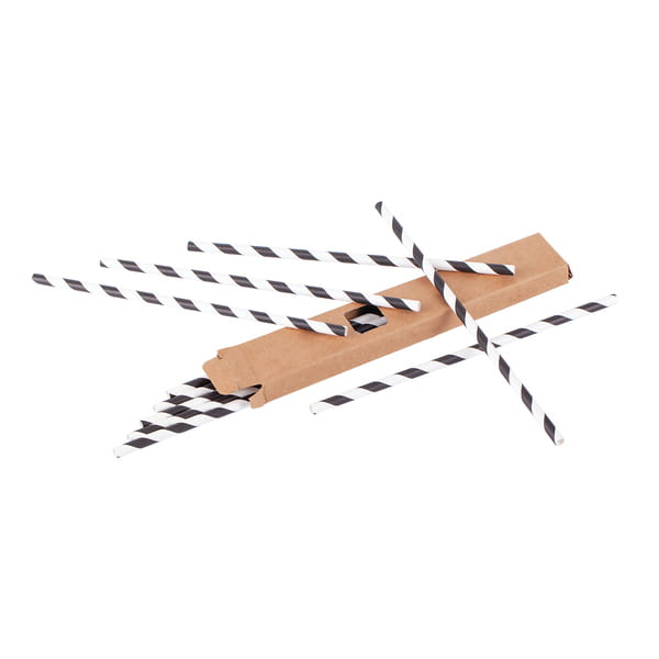Zestaw 10 słomek papierowych w pudełku wytworzonych z dbałością o środowisko naturalne. Słomki ulegają procesowi biodegradacji. Zarówno słomki jak i opakowanie nadają się do dalszego recyklingu.