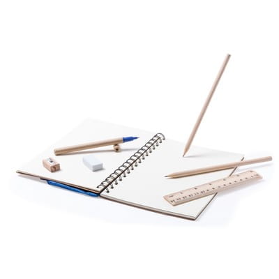 Zestaw szkolny, notatnik (ok. A5, 70 pustych kartek), piórnik na zamek błyskawiczny, długopis, 2 ołówki, linijka, temperówka i gumka