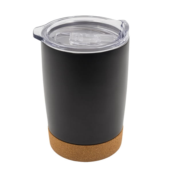 Zestaw biznesowy składający się z kubka próżniowego, parasola, notesu i długopisu. Zapakowany w eleganckim, czarnym pudełku. Notatnik A5 w twardej okładce, 80 kartek w kratkę o gramaturze 70 g/m². Kubek próżniowy z przezroczystą pokrywką, o pojemności 350 ml. Wykonany ze stali nierdzewnej pochodzącej z recyklingu. Czarny matowy korpus i korkowa podstawa. Parasol wykonany z materiału RPET 190T pongee, żebra wykonane z włókna szklanego. Posiada korkową rączkę. Pakowany w wodoodporne etui. Długopis z korkowym korpusem. Niebieski wkład 1,0 mm.