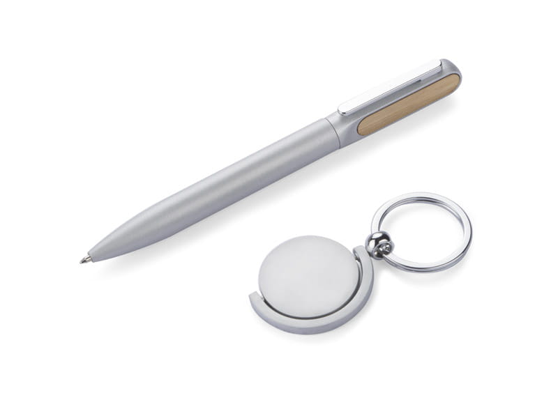 Elegancki zestaw upominkowy SELO składa się z długopisu i breloka. Oba produkty posiadają bambusowe elementy co nadaje im interesujący wygląd. Zestaw SELO to idealny pomysł na prezent. Zapakowane w pudełko imitujące bambus.