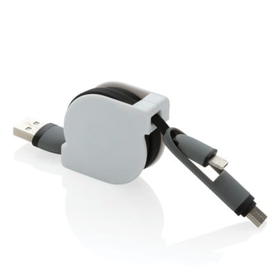 Zwijany, płaski kabel do ładowania i synchronizacji 3 w 1 z końcówkami: USB, typu C i 2 w 1 (micro USB oraz kompatybilną z urządzeniami iOS), obudowa wykonana z ABS, kabel z TPU, długość po rozwinięciu 1 m